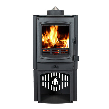 With its sleek black finish, modern design, and pedestal base with wood storage, the SW500 blends into both contemporary and traditional spaces. Perfect for cozy rooms or small homes, it offers reliable performance without taking up unnecessary space.