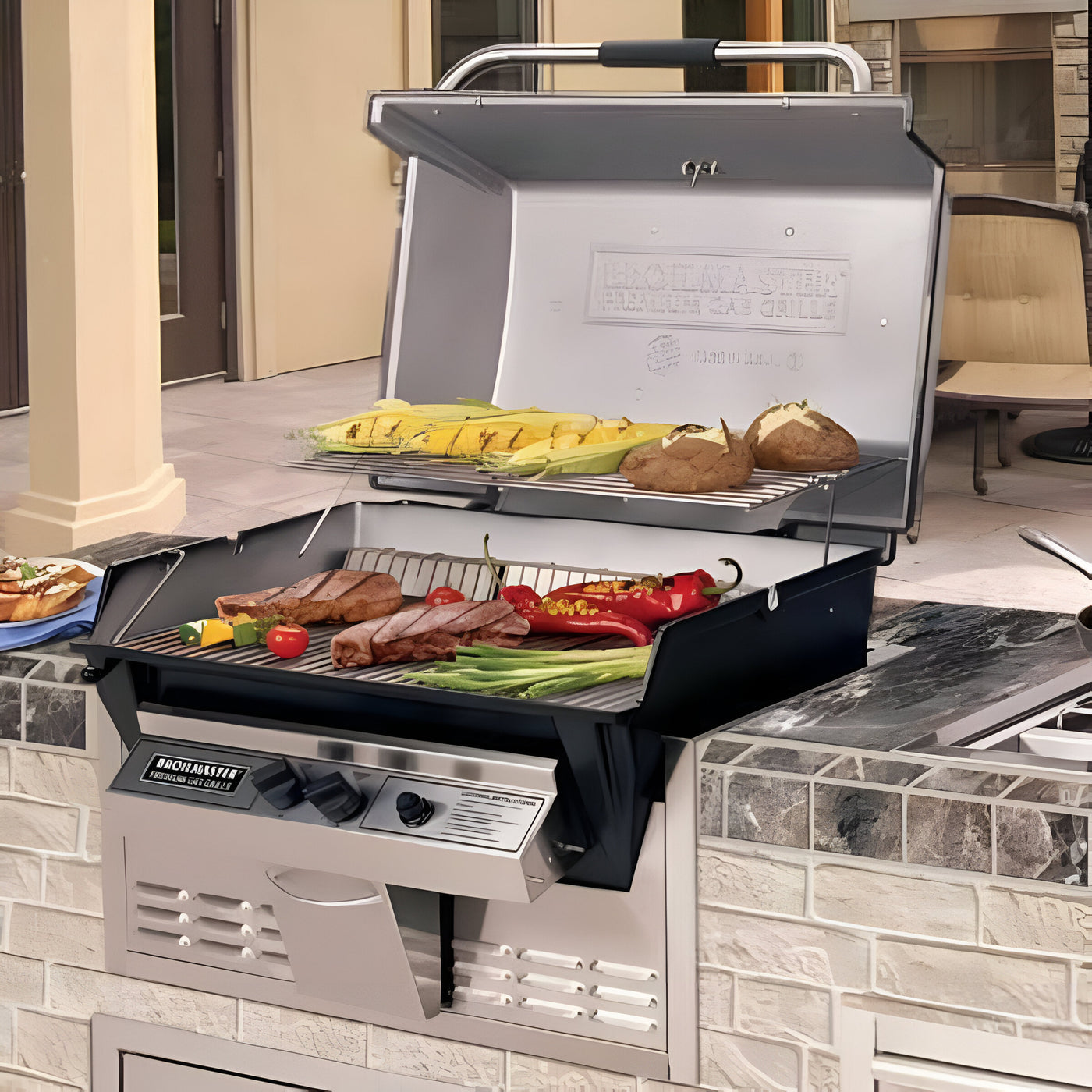 A stainless steel control panel adds sleek functionality. Plus, compatibility with all Broilmaster mountings—carts, posts, or side shelves—ensures a seamless setup. Trusted since 1966, Broilmaster delivers professional-grade performance that lasts.