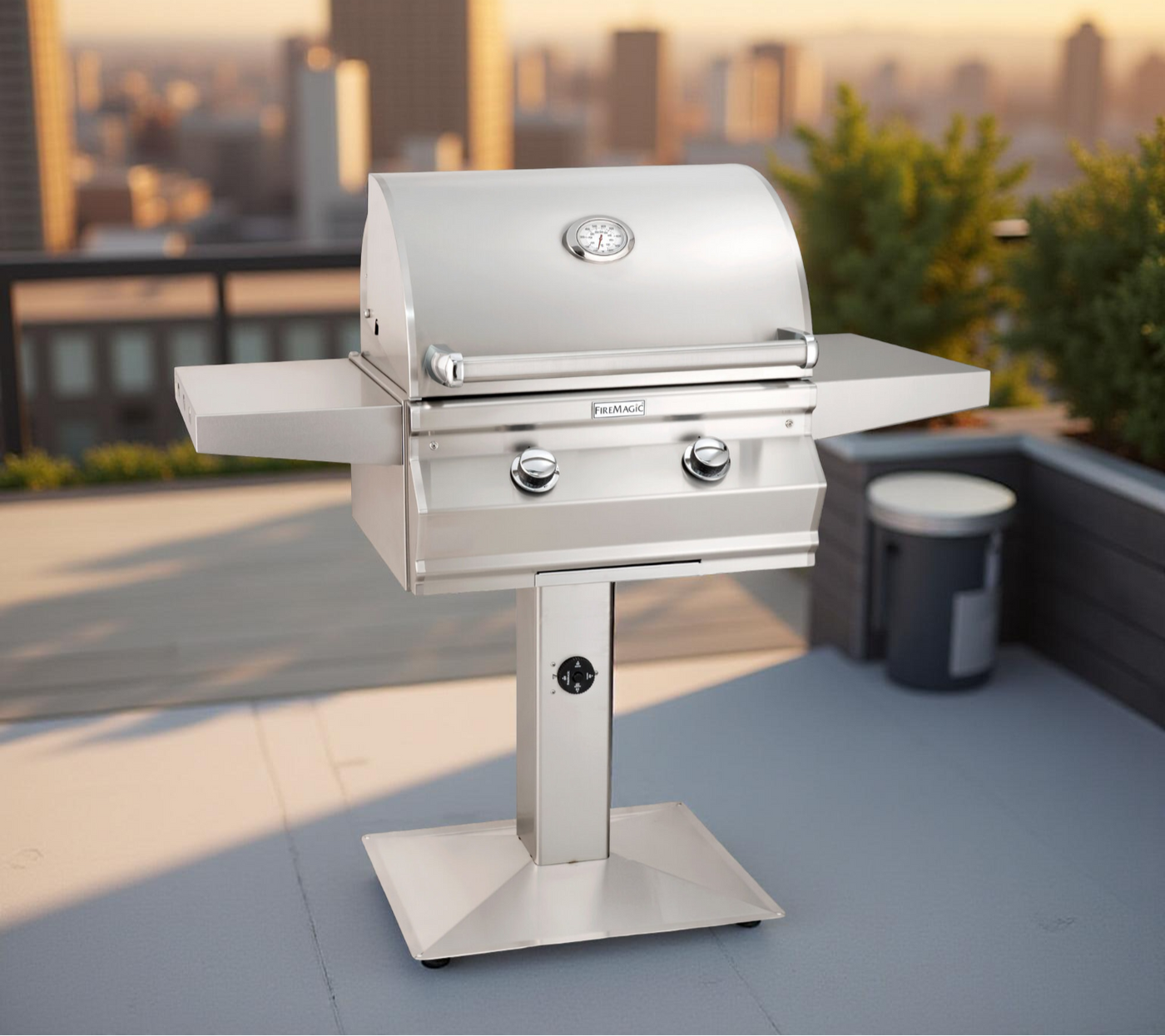 Fire Magic Choice Built-In & Post Mount Gas Grills - Choice C430s 24″ In‑Ground Post Mount Grill with Analog Thermometer & 1‑Hour Timer – 🟢 NG is backordered and will ship as soon as it is back in stock.